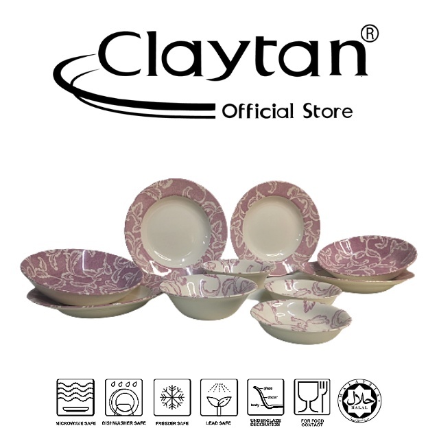 CLAYTAN 10 PCS DINNER SET B (4 Pax) Lead Safe Ceramic Tableware Pinggan Mangkuk Cup Teapot - Clarissa Pink