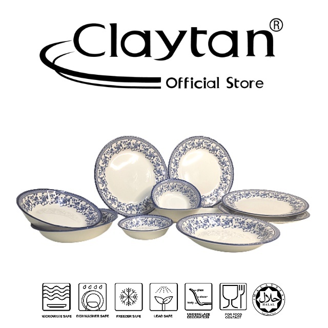 CLAYTAN 10 PCS DINNER SET F (4 PAX) Lead Safe Ceramic Tableware Pinggan Mangkuk Microwave Safe - Aster Blue