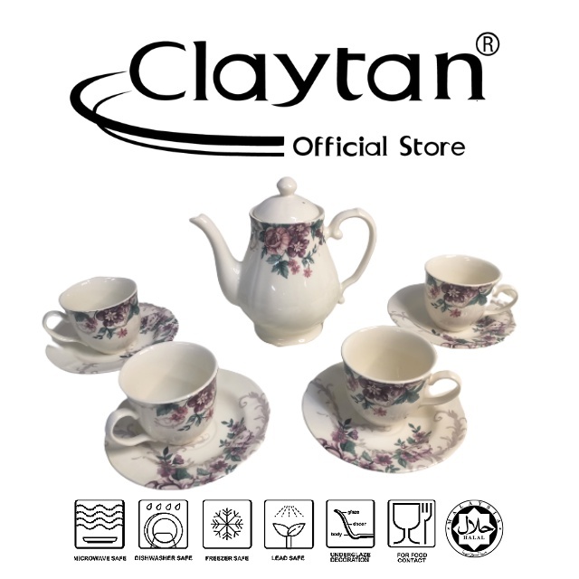 CLAYTAN 10 PCS TEA SET (4 PAX) Lead Safe Ceramic Tableware Pinggan Mangkuk Microwave Safe - GORGEOUS FULL