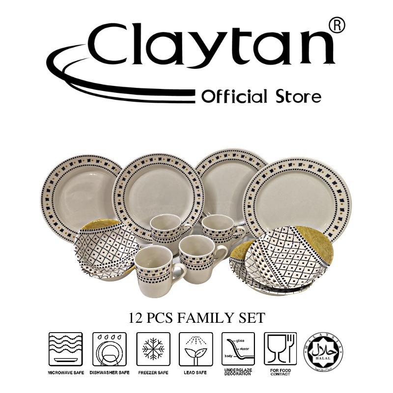 CLAYTAN 12 PCS DINNER SET (4 PAX) Lead Safe Ceramic Tableware Pinggan Mangkuk Microwave Safe - Calika Yellow