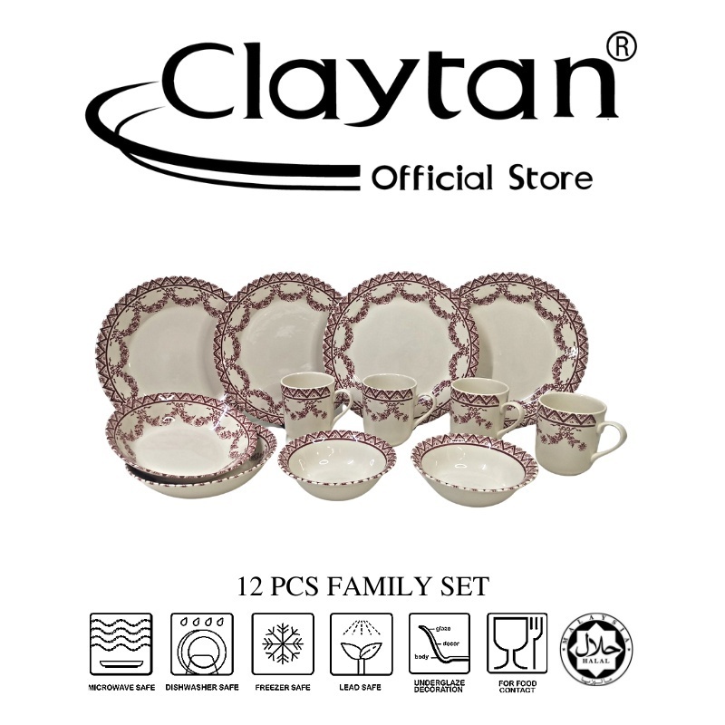 CLAYTAN 12 PCS FAMILY SET (4 PAX) Lead Safe Ceramic Tableware Pinggan Mangkuk Microwave Safe - Lagny