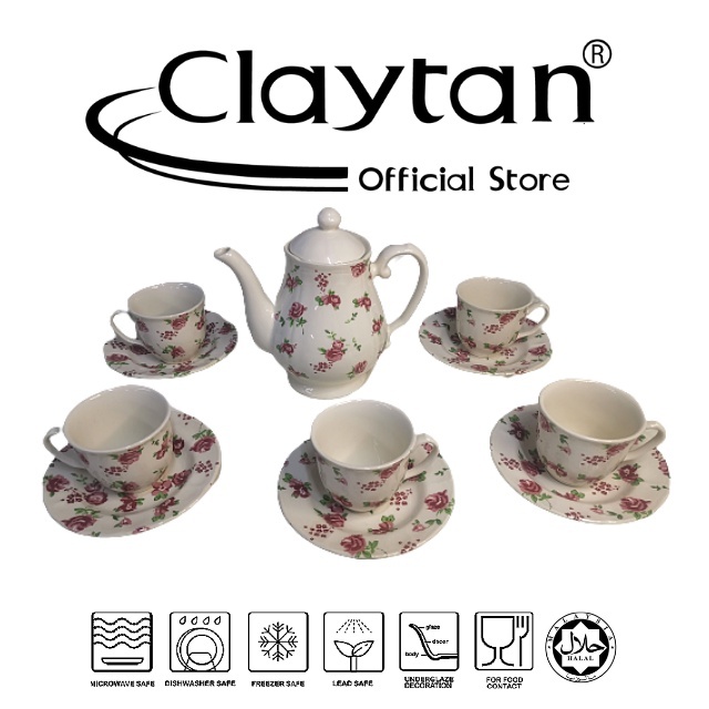 CLAYTAN 12 PCS TEA SET (5 Pax) Lead Safe Ceramic Tableware Pinggan Mangkuk Cup Teapot - ABBEY