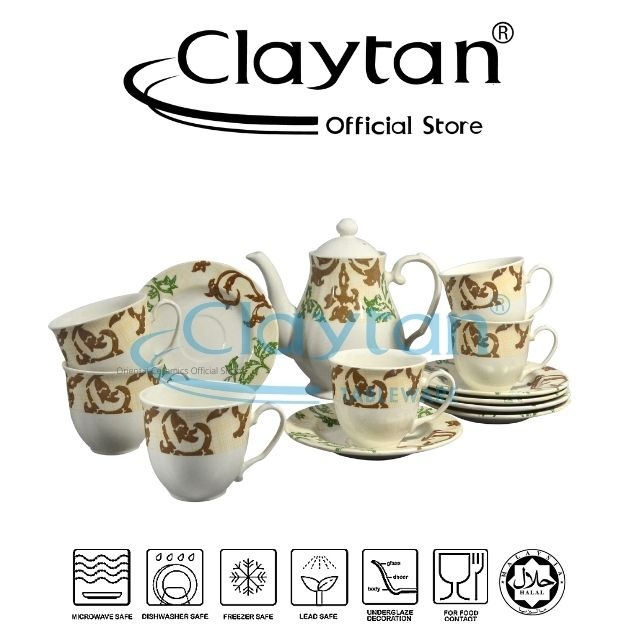 CLAYTAN 14 PCS TEA SET E (6 Pax) Lead Safe Ceramic Tableware Pinggan Mangkuk Cup Teapot -Old Empire