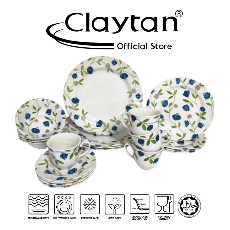 CLAYTAN 20 PCS DINNER SET (4 PAX) Lead Safe Ceramic Tableware Pinggan Mangkuk Microwave Safe -ELEGANT FLORAL