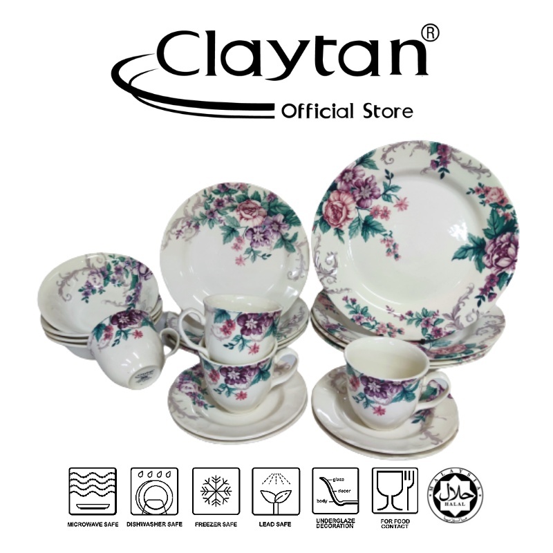 CLAYTAN 20 PCS DINNER SET (4 PAX) Lead Safe Ceramic Tableware Pinggan Mangkuk Microwave Safe -GORGEOUS FULL