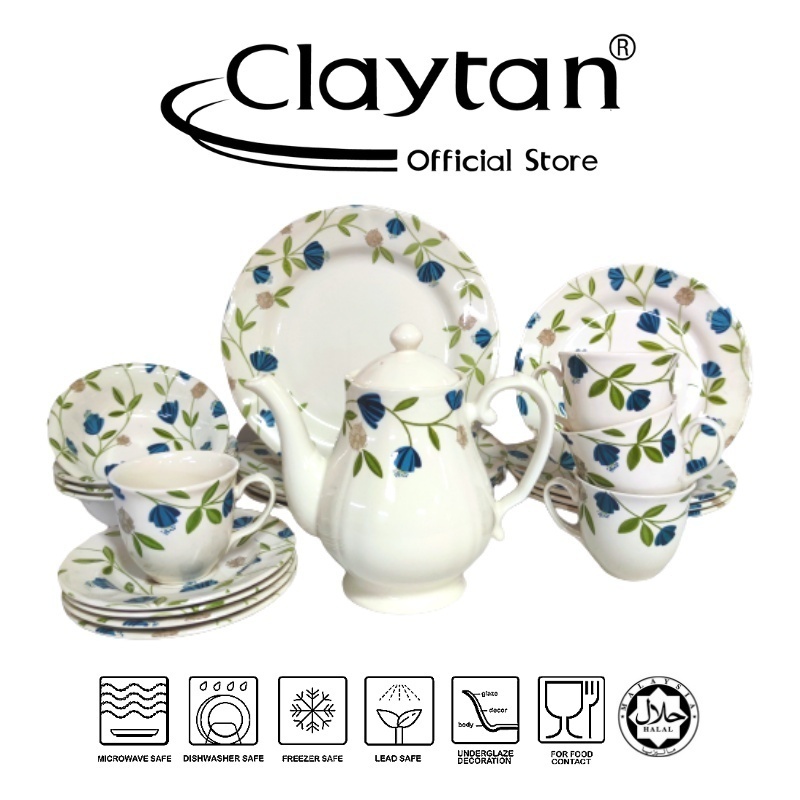 CLAYTAN 22 PCS DINNER SET (4 PAX) Lead Safe Ceramic Tableware Pinggan Mangkuk Microwave Safe - Elegant Floral