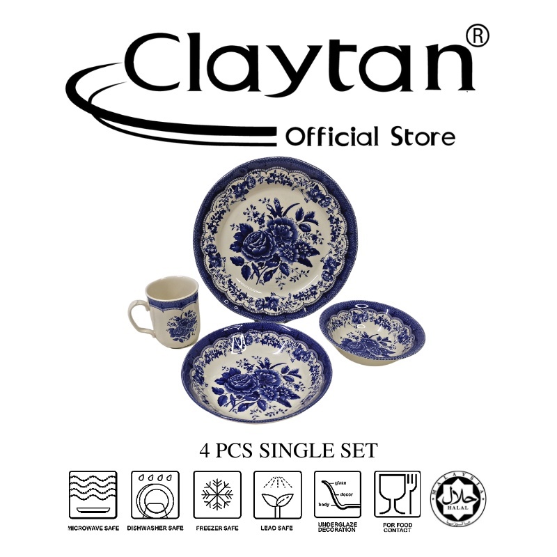 CLAYTAN 4 PCS DINNER SET (1 PAX) Lead Safe Ceramic Tableware Pinggan Mangkuk Microwave Safe - Victoria Blue