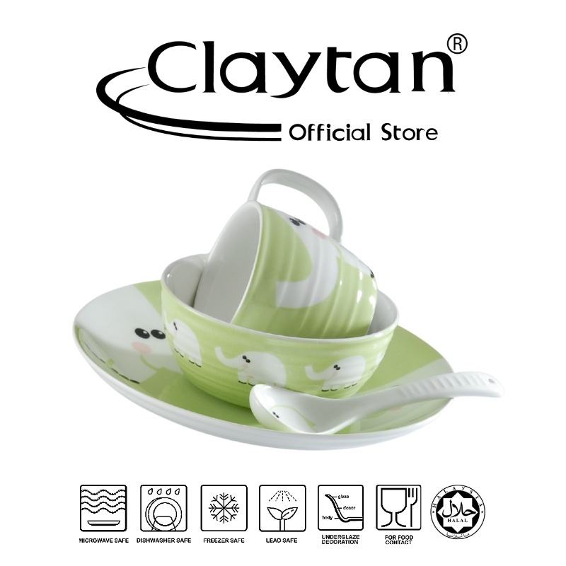 CLAYTAN 4pcs Children ware Set (1 Pax) Anti Bacterial Lead Safe Ceramic Tableware - Baby Elephant
