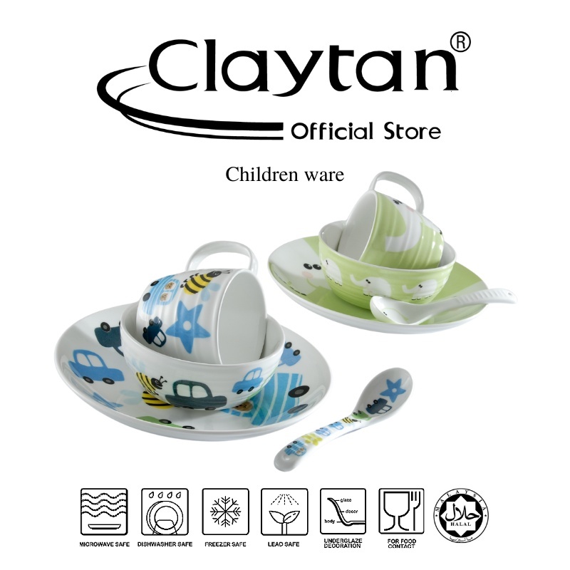 CLAYTAN 4pcs Children ware Set (1 Pax) Anti Bacterial Lead Safe Ceramic Tableware - Fun Cars