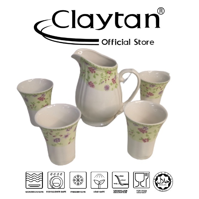 CLAYTAN 5 PCS WATER PITCHER SET (4 Pax) Lead Safe Ceramic Tableware Pinggan Mangkuk Cup Teapot -ARCY