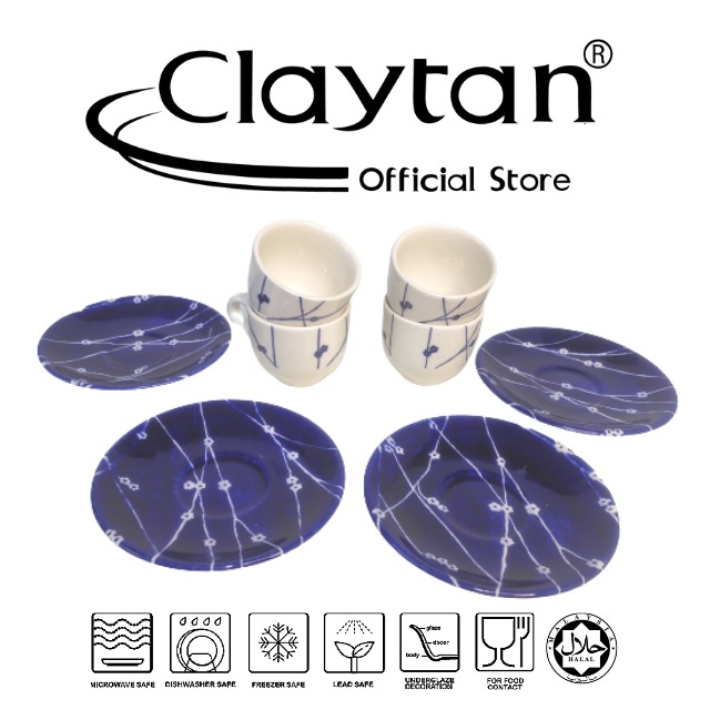 CLAYTAN 8PCS ESP CUP/SAUCER SET (4 PAX) Lead Safe Ceramic Tableware Pinggan Mangkuk Microwave Safe - LUCY BLUE