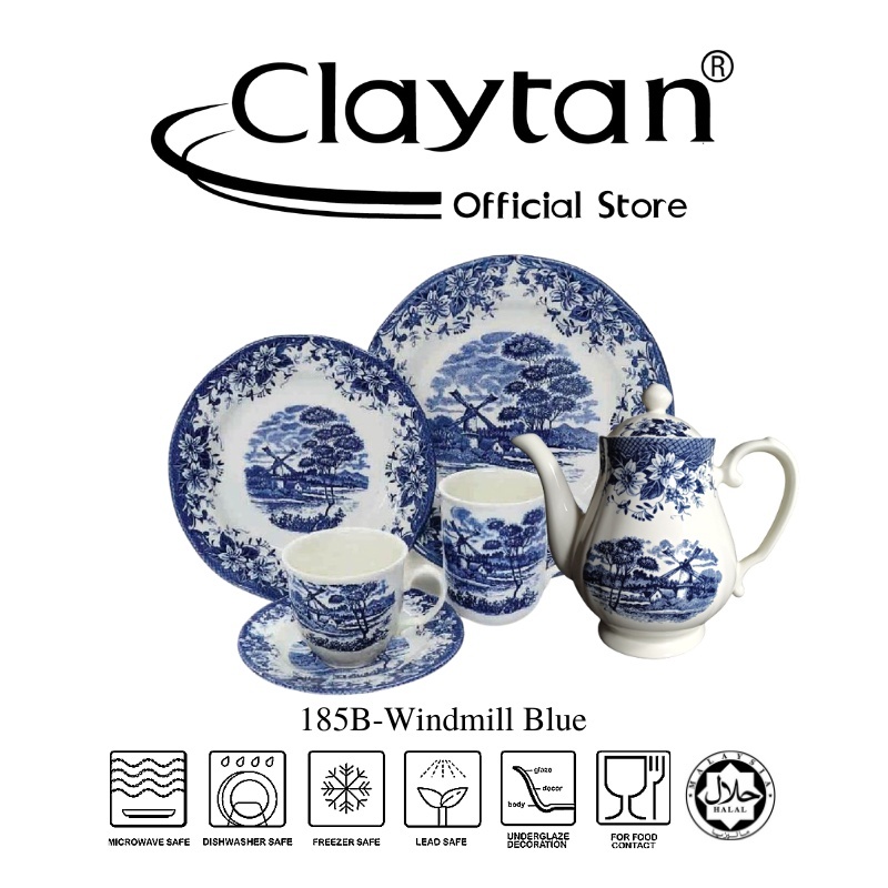 Claytan Complete Range Lead Safe Ceramic Tableware - Windmill Blue
