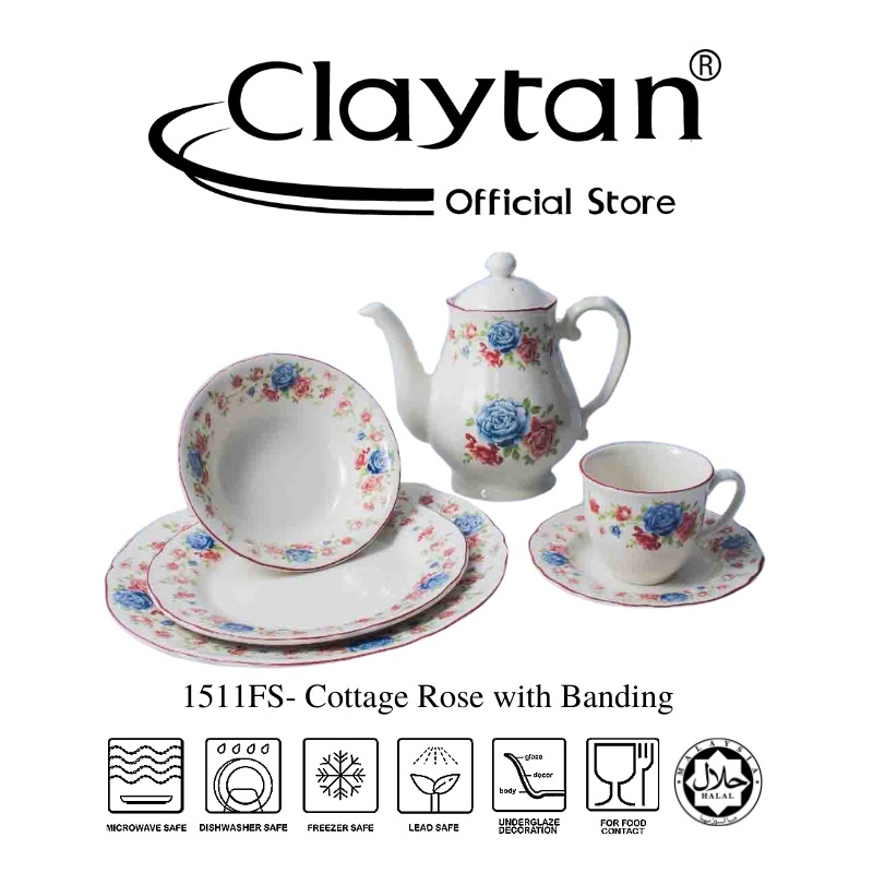 CLAYTAN Cottage Rose with Banding Complete Range Lead-Safe Ceramic Tableware Microwave Safe
