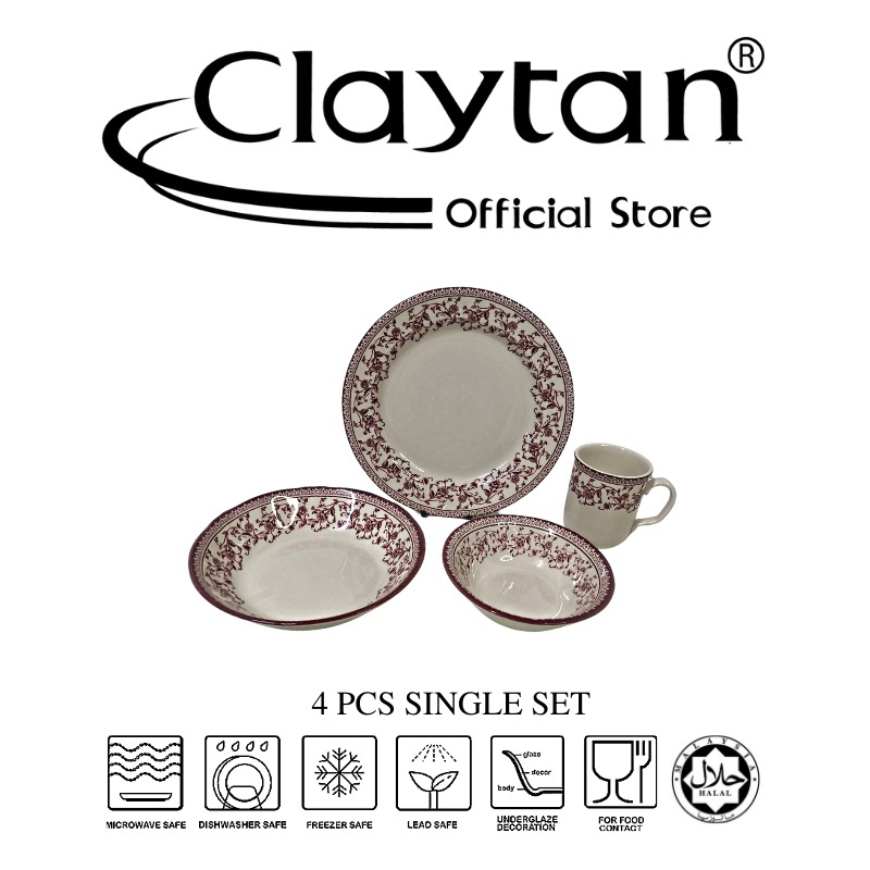 Claytan Dinner Set 1 Pax Lead Safe Ceramic Tableware Microwave Safe - Aster Pink (4 Pcs)