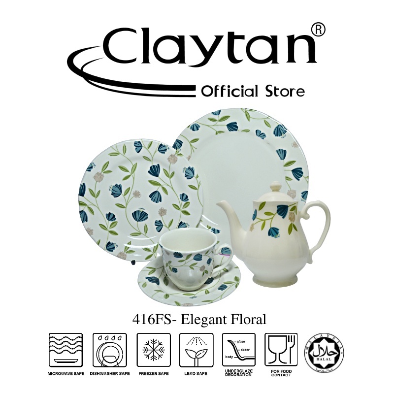 CLAYTAN Elegant Floral Border Complete Range Lead Safe Ceramic Tableware Pinggan Mangkuk Microwave Safe