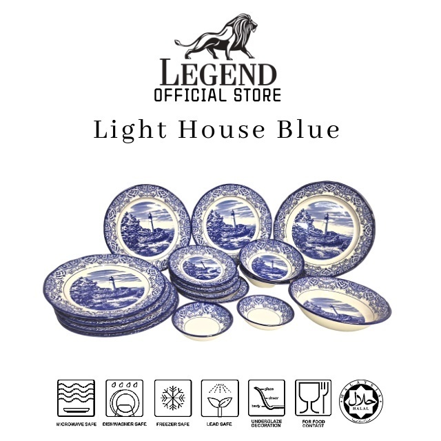 LEGEND Tableware Dinnr Set - Ligh House Blue (16 Pcs)