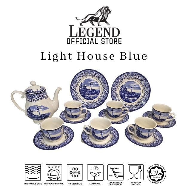 LEGEND Tableware Hi Tea Set - Ligh House Blue (16 Pcs)