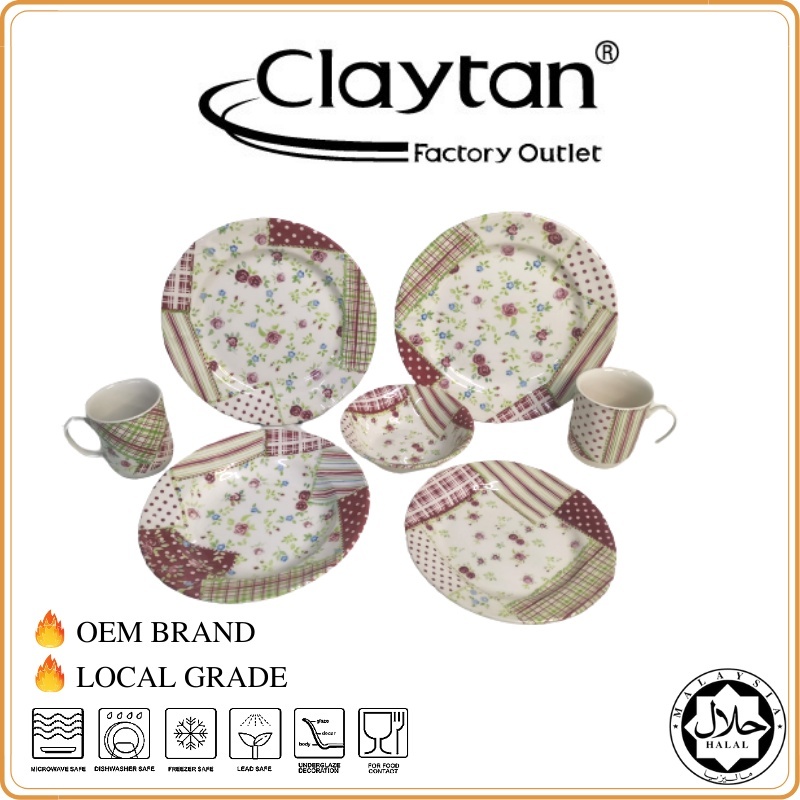 OEM BRAND 7 PCS COUPLE SET A ( 129FS ANAIS PATCHWORK ) SET PINGGAN MANGKUK CERAMIC ENGLISH DESIGN